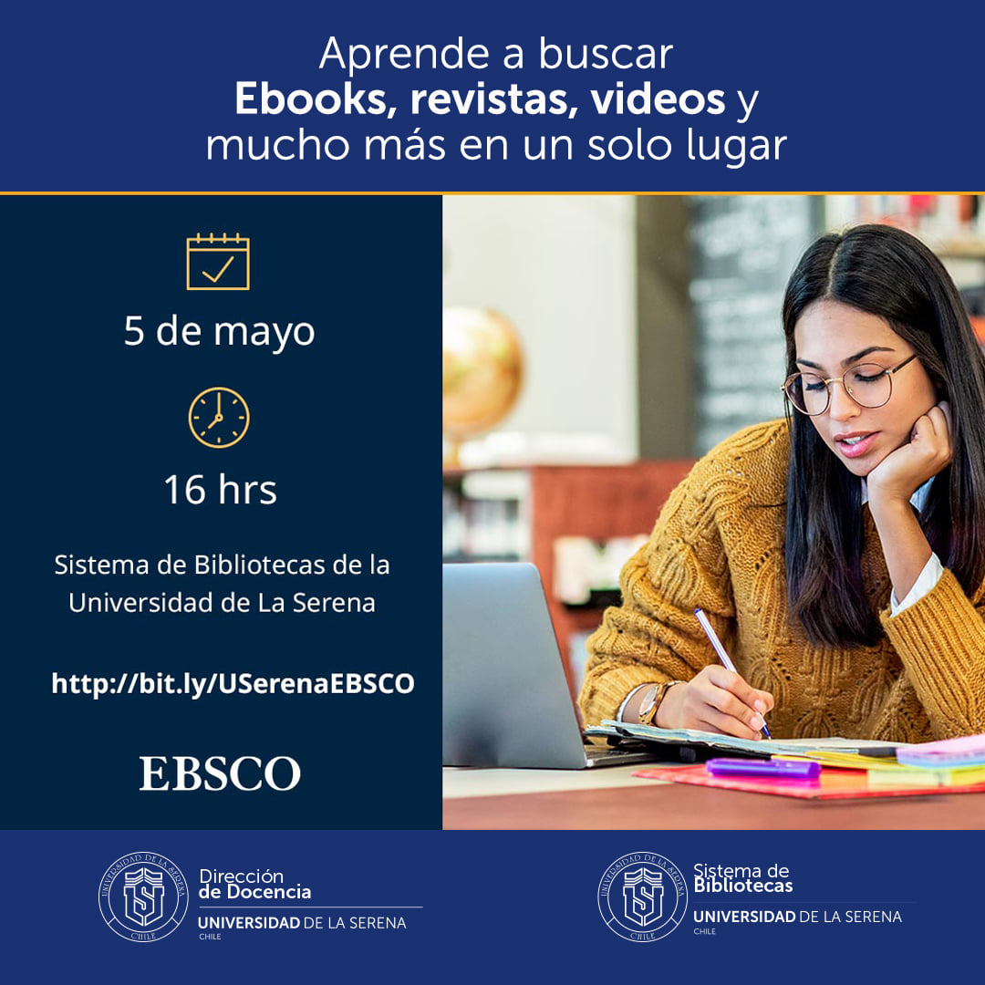 El 05 de Mayo a las 16 hrs se presentará el Descubridor de Ebsco lo que permitirá buscar desde un solo lugar todo lo que necesites.